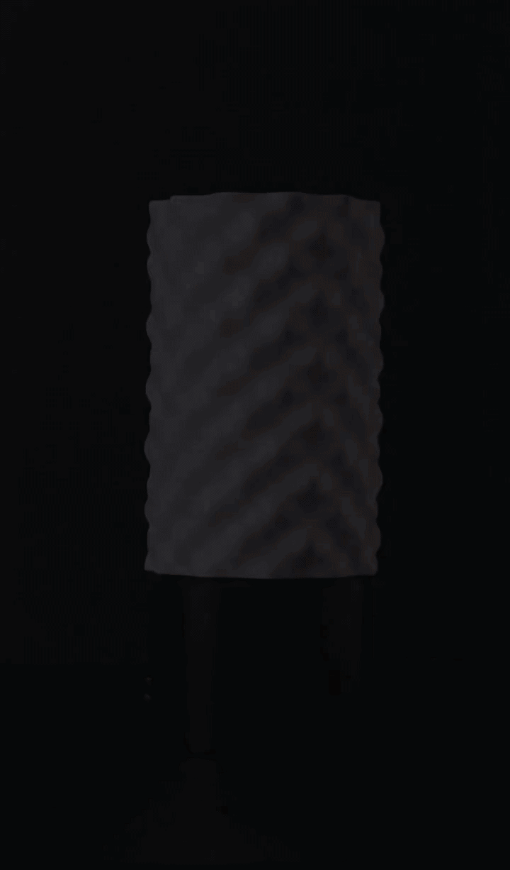 A modern table lamp exploring the intersection of lighting design, digital fabrication, and material experimentation with a unique organic texture.